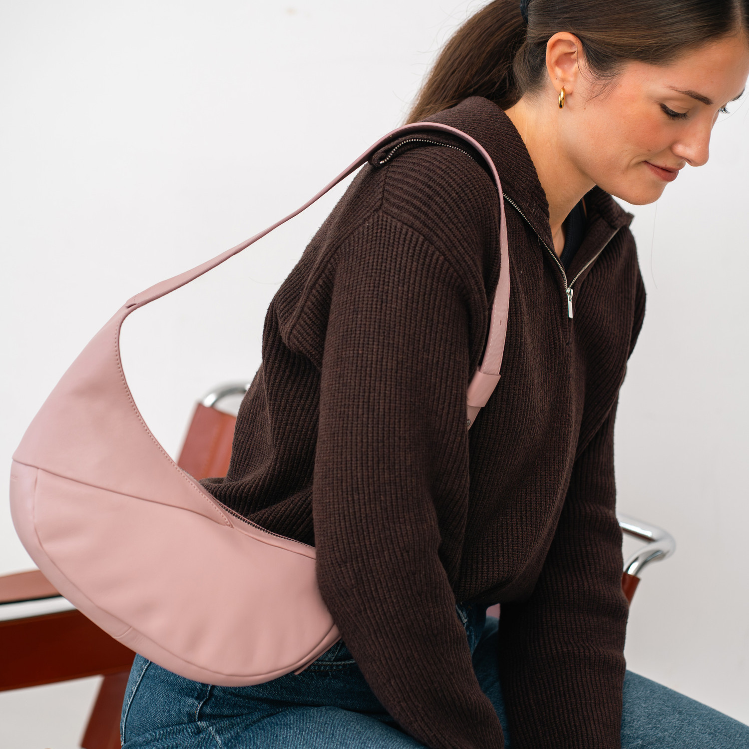 Bee Balm ist eine Halfmoon Bag in mittlerer Größe. Sie hält all deine wichtigen Essentials griffbereit und zeigt sich in cleanem Design mit dekorativer Naht. Mit ihrer modernen Form ist sie eine praktische Begleitung für entspannte Alltagslooks - im Kino, beim Bummeln über dem Markt oder im Café.