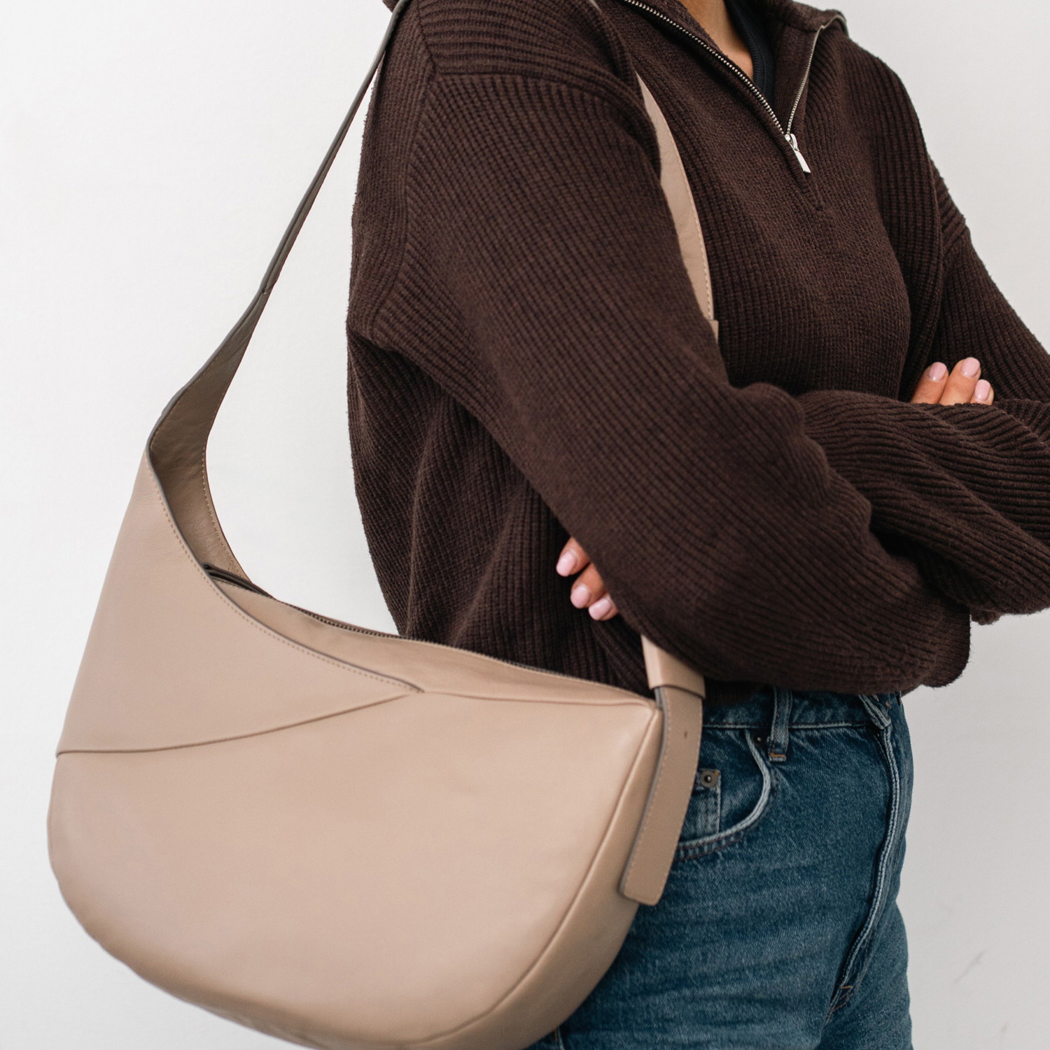 Bee Balm ist eine Halfmoon Bag in mittlerer Größe. Sie hält all deine wichtigen Essentials griffbereit und zeigt sich in cleanem Design mit dekorativer Naht. Mit ihrer modernen Form ist sie eine praktische Begleitung für entspannte Alltagslooks - im Kino, beim Bummeln über dem Markt oder im Café.