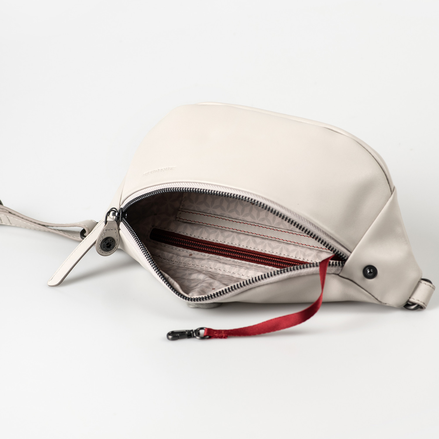 Das weiche, griffige Rindleder ist sorgsam semi-vegetabil. Handwerkliche Details unterstreichen Qualität und Individualität der Styles. Die hochwertige Hardware in smokey Grey ist matt gebürstet.Pflegeempfehlung