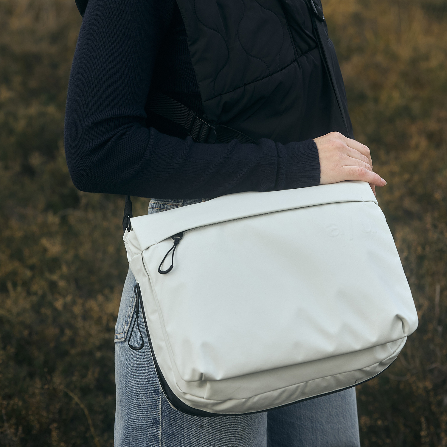 The styles are made from tightly woven, recycled nylon certified according to the Global Recycled Standard and have a water-repellent impregnation. An additional PFAS free coating gives them a highly functional, rainproof surface. We also use special high-performance threads that do not absorb water. The styles in light colors have an additional dirt-repellent coating. Inside is a durable lining made from recycled polyester.