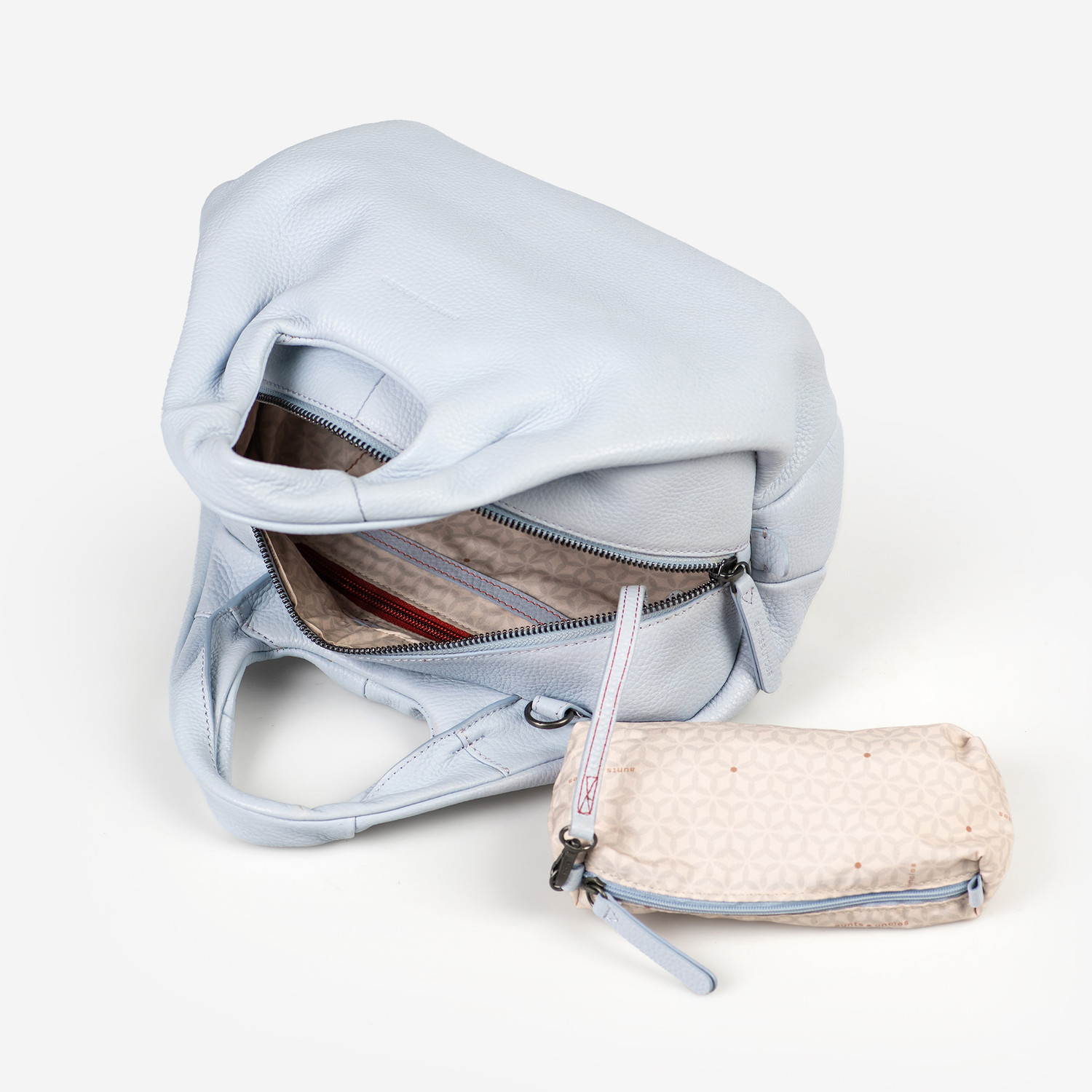 Discover Beauty - a bag that lives up to its name! With its voluminous, organic design and buttery soft grained leather, it is an eye-catcher that gives every outfit that little something. Wear it as cuddly crossbody bag in everyday life or as a sophisticated handbag for special occasions! A main compartment with a two-zipper closure offers plenty of storage space. Inside there are two zipper pockets, a card slot and a practical key strap. The removable extra pouch with zipper is ideal for loose small items that you can't do without when you're out and about. The adjustable strap can be fastened with two carabiners and gives Beauty a sporty, elegant look.