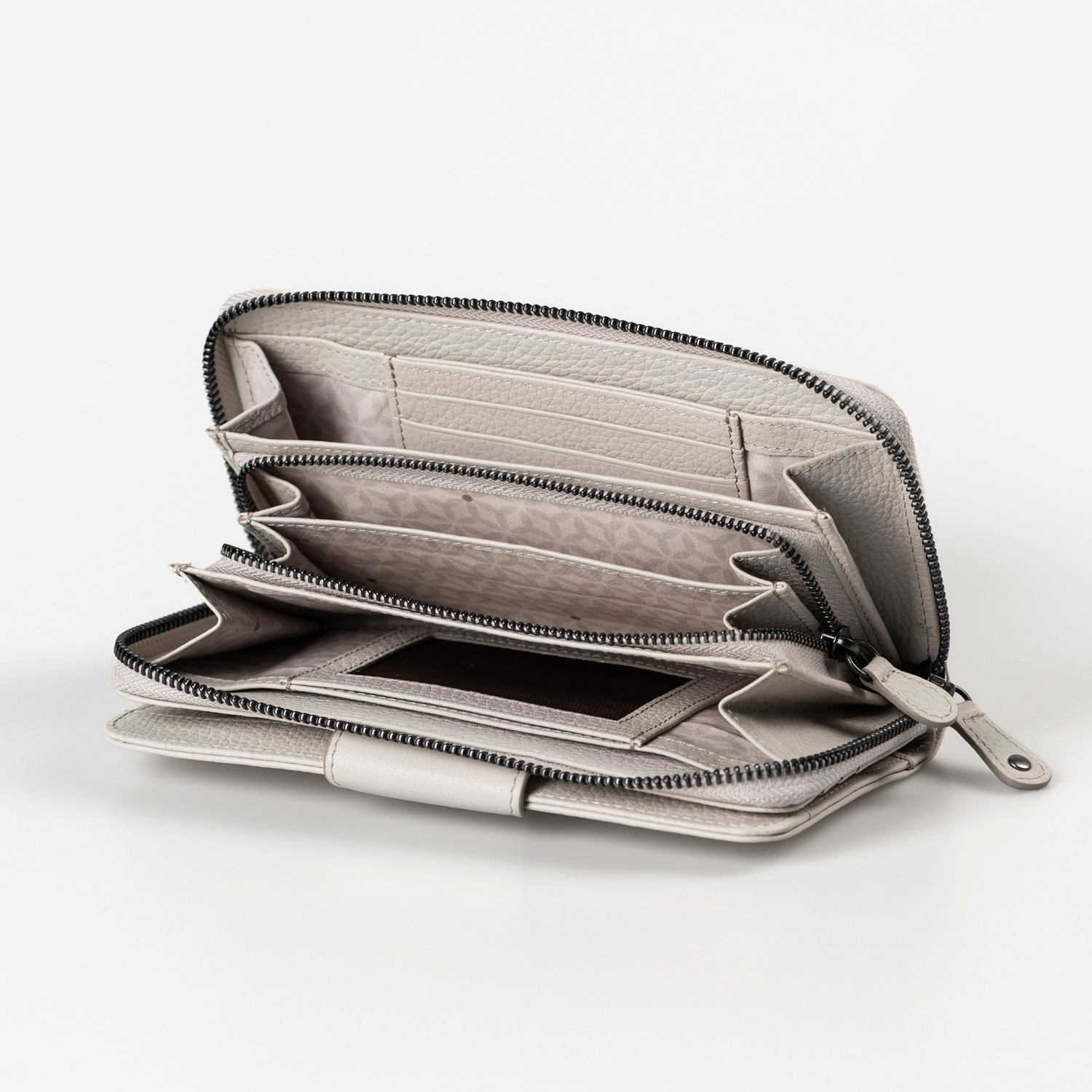 The spacious Catelyn easily fits all your cards in your pocket - clearly organized and always ready to hand. Special RFID protection ensures that the data on your cards is safe. The combination of butter-soft smooth and finely grained leather gives the large wallet a luxurious touch, which is emphasized by an elegant logo plaque.
