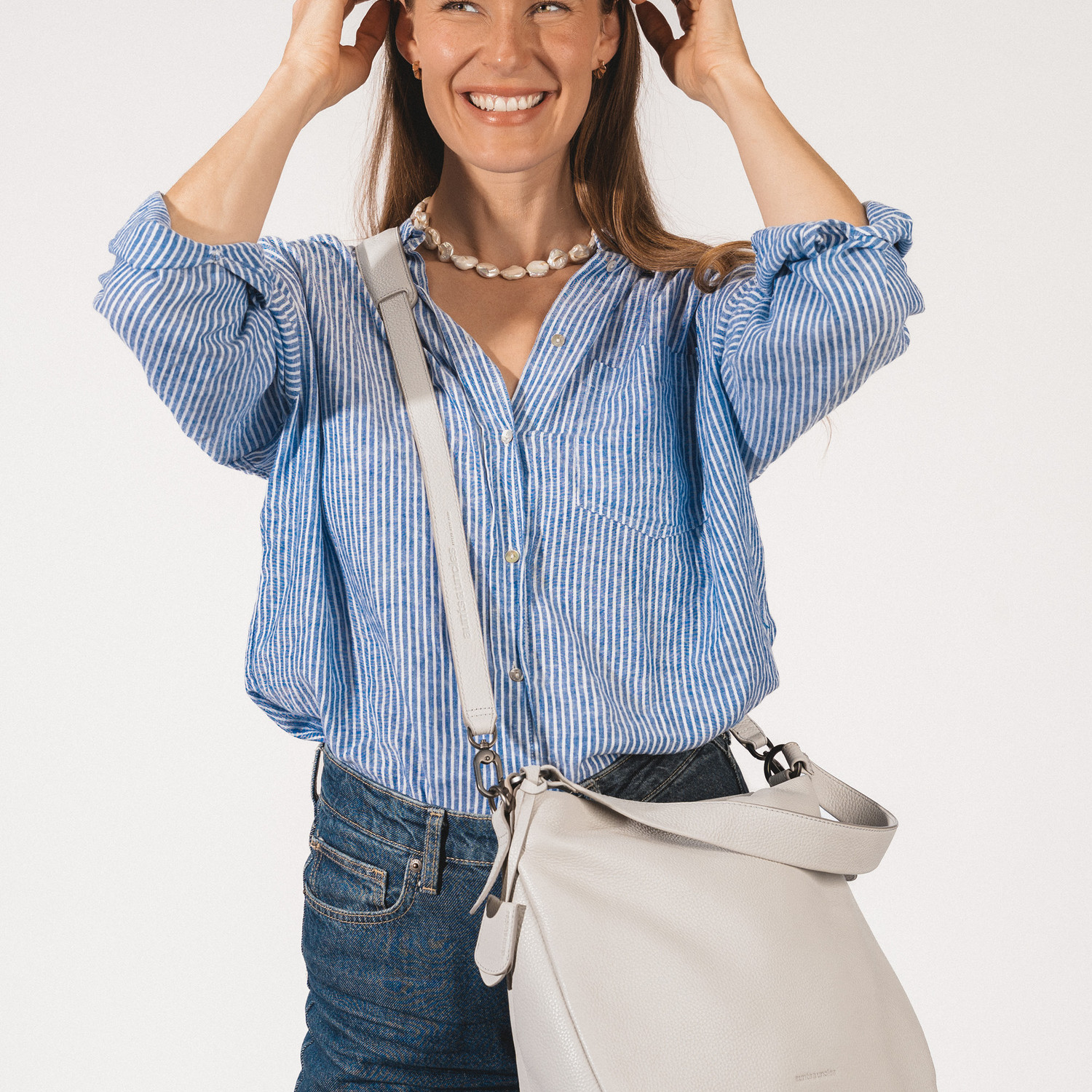 Darling, your new best friend, comes in the classic shape of a shoulder bag made from cuddly, butter-soft, grained leather. The spacious main compartment offers space for A4-sized magazines and has various pockets, a key strap and a removable extra pouch for loose small items. In addition to the wide shoulder strap, Darling has a detachable, adjustable crossbody strap that can be attached using two carabiners and effortlessly lends the bag a sporty, elegant touch. As a little extra, Darling also comes with a leather address tag.
