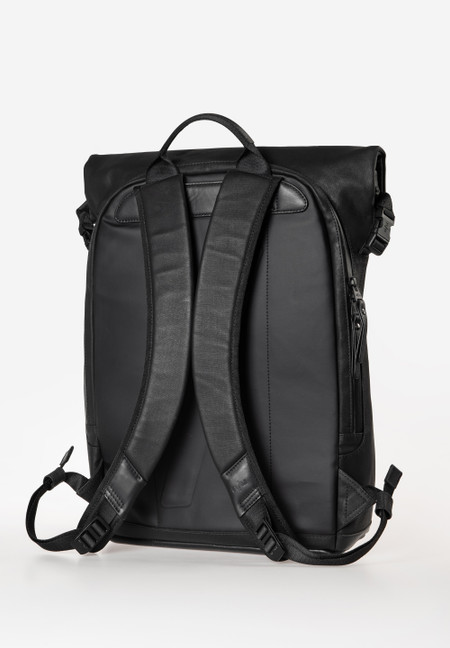 Fukui is the larger version of Tokio, also made of silk matt coated cotton fabric, with waterproof zippers and room for a notebook up to 15 inches. For easy and quick handling the sporty backpack has an additional large zip opening on the back. Fukui is suitable for documents in A4 format, making it a reliable companion not only for leisure activities but also for university.