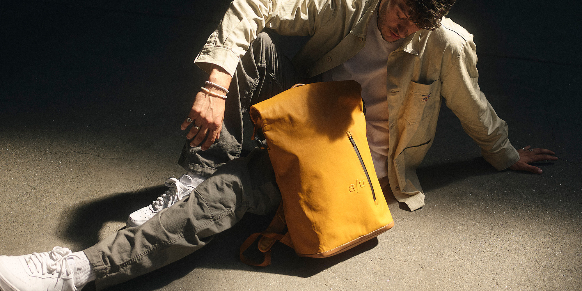The canvas in our Japan series is made from densely combed and woven organic cotton and finished with a semi-gloss vintage coating. The PFAS free coating gives the styles a water-repellent surface with a leather-like look that polishes with use. We use special high-performance threads for this series that do not absorb water. The rainproof zippers are made from recycled material. The leather applications are made from sustainably tanned premium cowhide. care advice