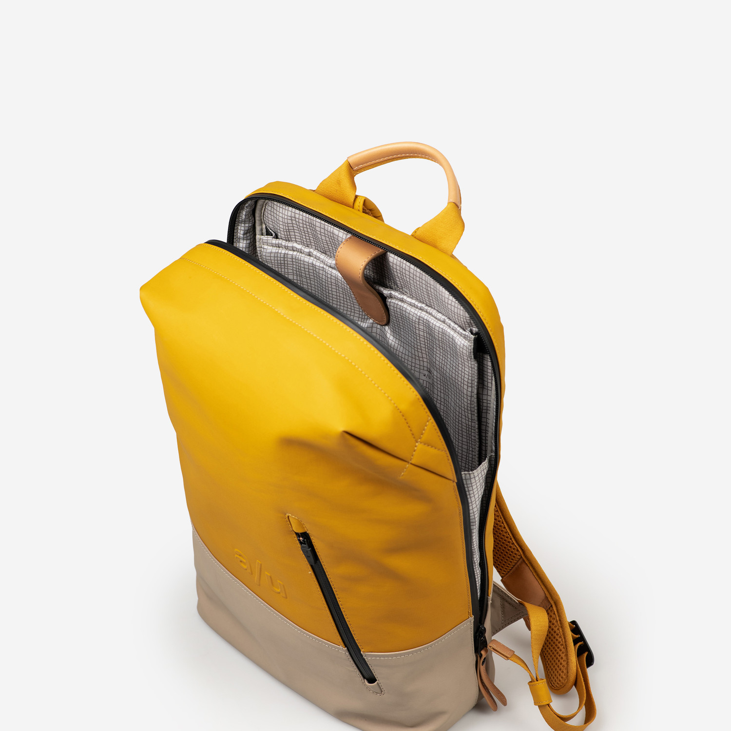 Hamamatsu is not only a lightweight. Thanks to the all-round, rainproof zippers, it is also super easy to handle and offers space for a 13-inch notebook, among other things. The water-repellent canvas has a silk matt coating and polishes with use. The lining of the sporty backpack is made of durable polyester.