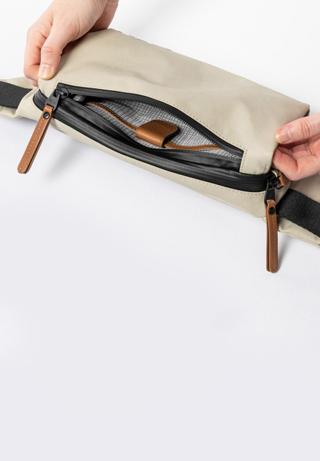 The canvas in our Japan series is made from densely combed and woven organic cotton and finished with a semi-gloss vintage coating. The PFAS free coating gives the styles a water-repellent surface with a leather-like look that polishes with use. We use special high-performance threads for this series that do not absorb water. The rainproof zippers are made from recycled material. The leather applications are made from sustainably tanned premium cowhide. care advice
