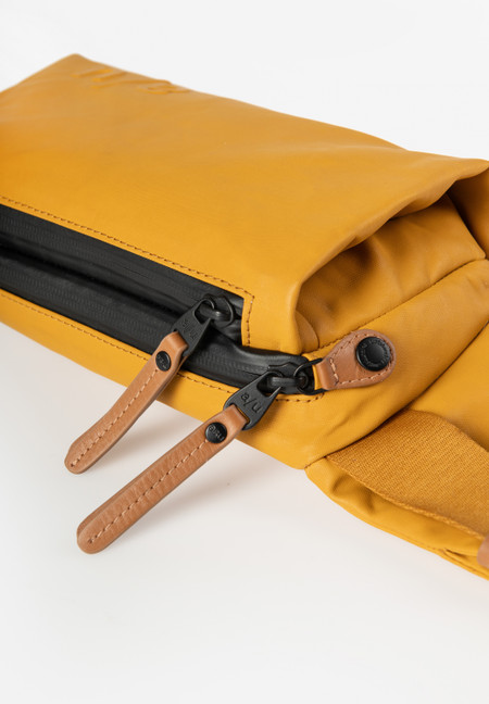 The canvas in our Japan series is made from densely combed and woven organic cotton and finished with a semi-gloss vintage coating. The PFC- and PFAS-free coating gives the styles a water-repellent surface with a leather-like look that polishes with use. The leather applications are made of cowhide. care advice