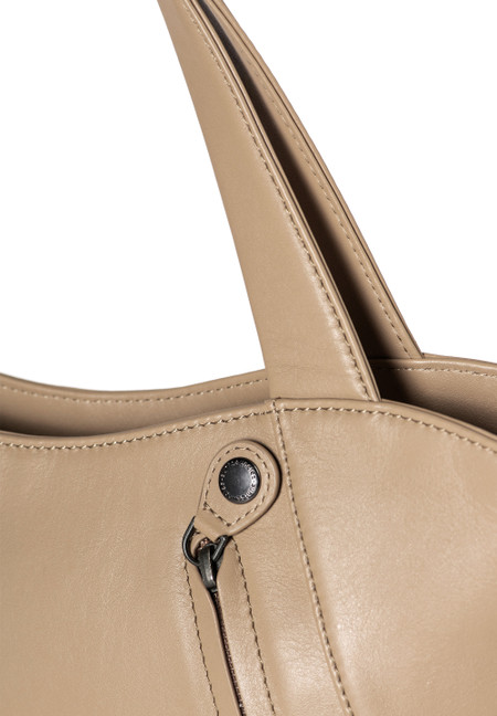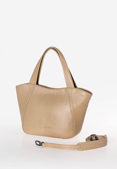 Discover Hyacinth, a versatile, compact trapeze-shaped shopper that you can carry stylishly in your hand or casually in the crook of your arm. Hyacinth is the perfect companion for all kinds of occasions and looks, as the bag made from sustainably tanned premium leather also comes with a long, detachable crossbody strap with shoulder pad. The main compartment with various insertion options offers you optimal storage space. A key strap and a zipper pocket on the back with push button provide additional organization and security.