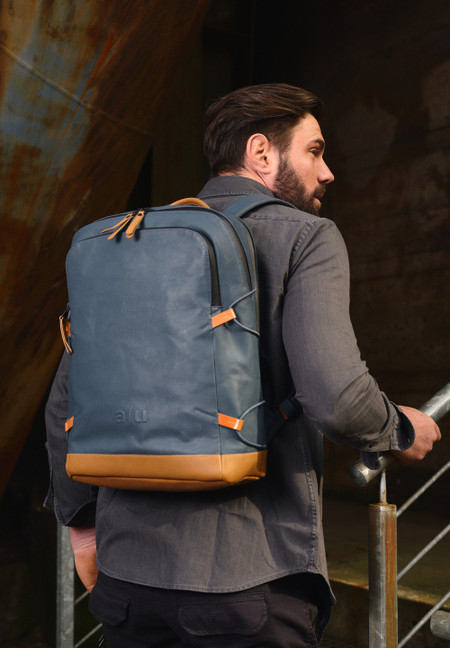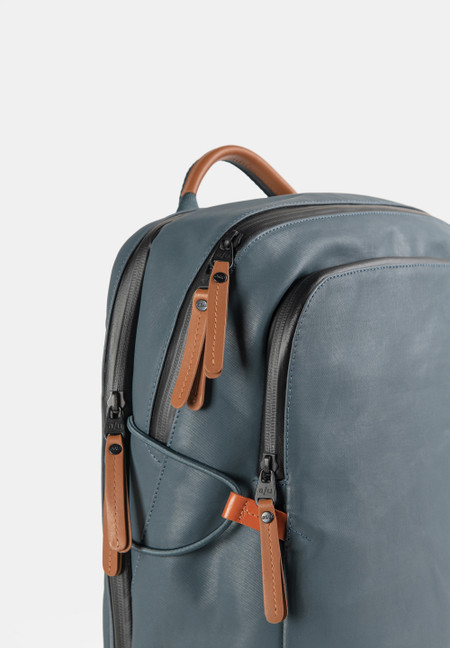 The canvas in our Japan series is made from densely combed and woven organic cotton and finished with a semi-gloss vintage coating. The PFAS free coating gives the styles a water-repellent surface with a leather-like look that polishes with use. We use special high-performance threads for this series that do not absorb water. The rainproof zippers are made from recycled material. The leather applications are made from sustainably tanned premium cowhide. care advice
