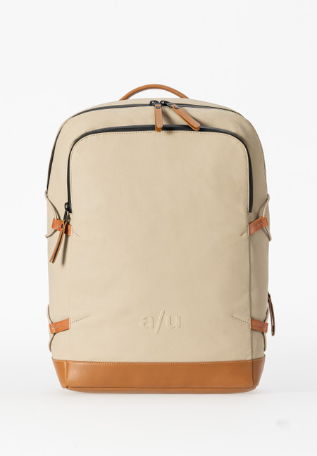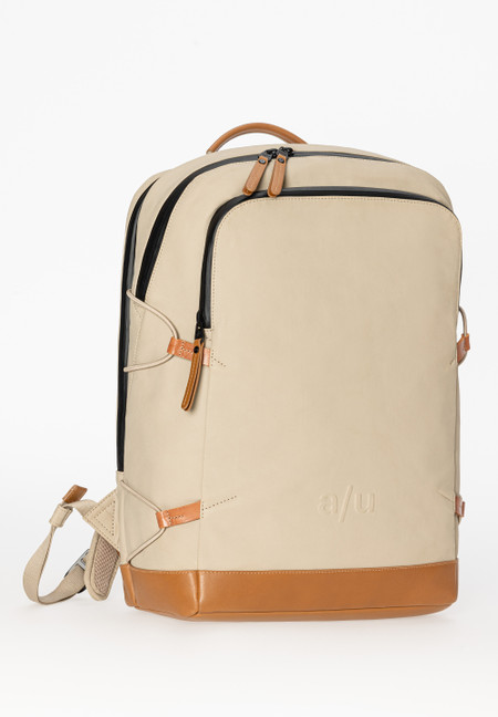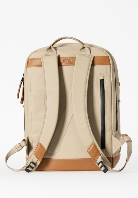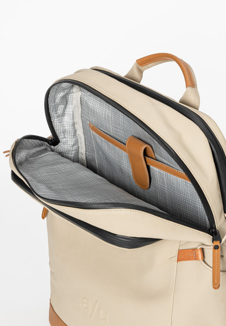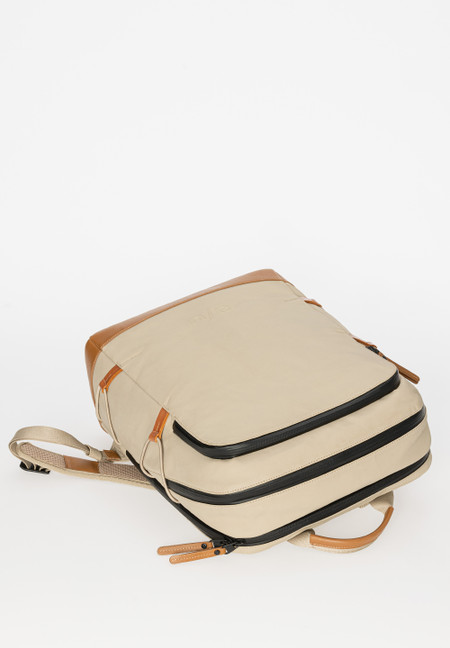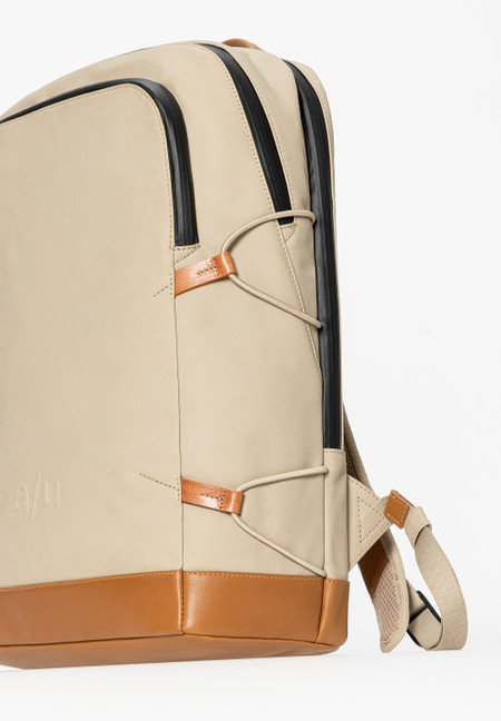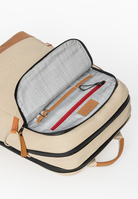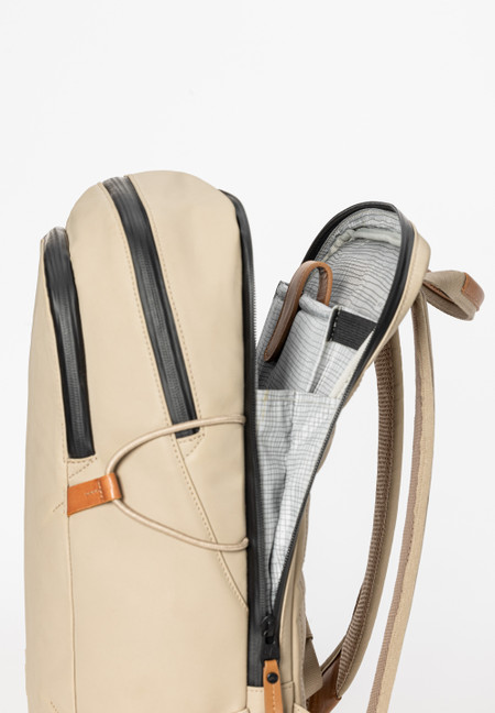 The canvas in our Japan series is made from densely combed and woven organic cotton and finished with a semi-gloss vintage coating. The PFAS free coating gives the styles a water-repellent surface with a leather-like look that polishes with use. We use special high-performance threads for this series that do not absorb water. The rainproof zippers are made from recycled material. The leather applications are made from sustainably tanned premium cowhide. care advice