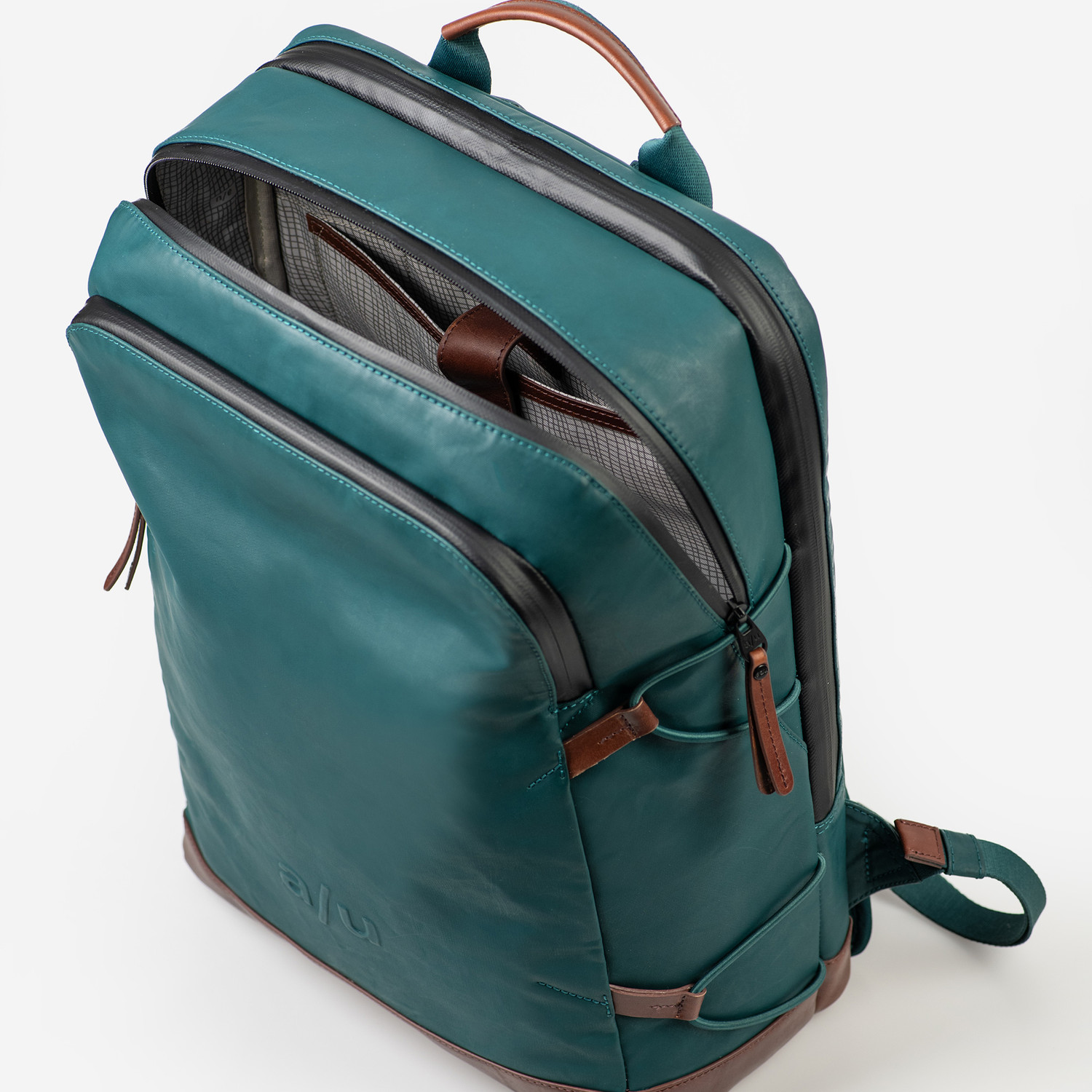 Kawaguchi perfectly combines silk-matt coated, water-repellent cotton fabric with applications and bottoms made of cowhide for a modern, urban look in everyday life, at university or while travelling. The lightweight canvas is made of GOTS-certified organic cotton. Water-repellent zippers protect the contents of the backpack, leaving your head and hands free for what really matters.