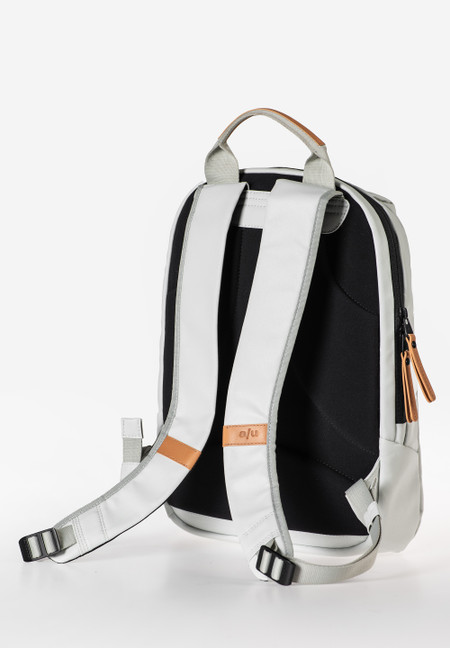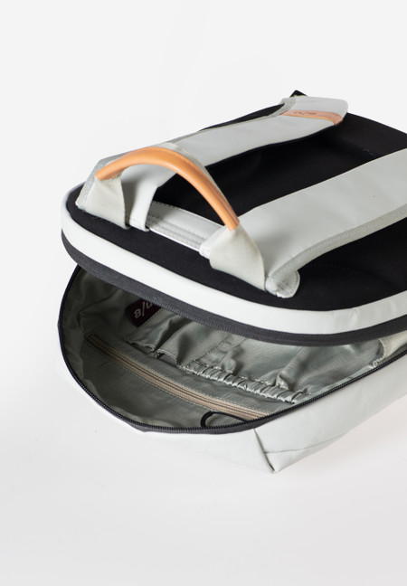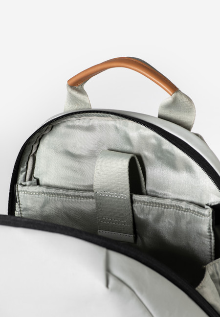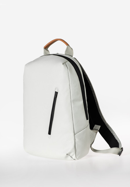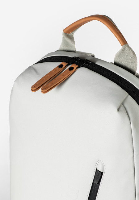 The lightweight yet extremely durable recycled nylon is certified according to the Global Recycled Standard. In addition to a water-repellent impregnation, a PFC- and PFAS-free coating provides reliable protection against moisture and gives the material a highly functional, weather-resistant surface. Furthermore, we use special water-repellent high-performance threads. The zippers are treated with a water-repellent finish. The Aquaguard zippers by YKK are made from recycled PET. The leather details on the non-vegan styles are made from sustainably tanned premium cowhide leather and come from an LWG-certified tannery. The a/u lining is made from recycled polyester. care advice