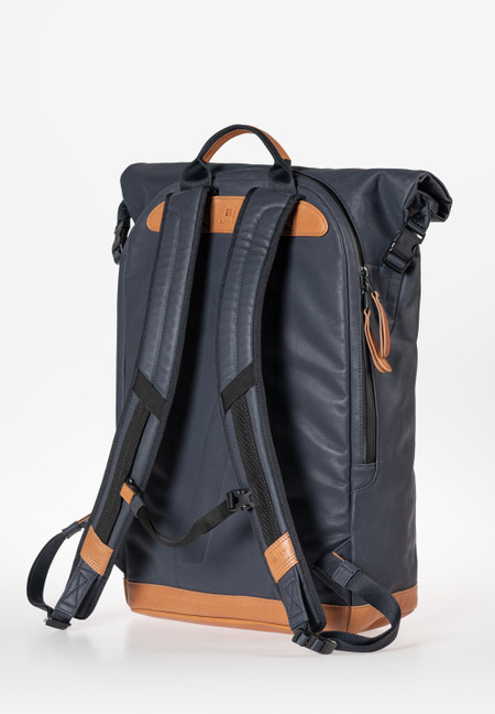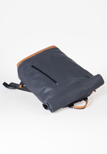 The canvas in our Japan series is made from densely combed and woven organic cotton and finished with a semi-gloss vintage coating. The PFAS free coating gives the styles a water-repellent surface with a leather-like look that polishes with use. We use special high-performance threads for this series that do not absorb water. The rainproof zippers are made from recycled material. The leather applications are made from sustainably tanned premium cowhide. care advice