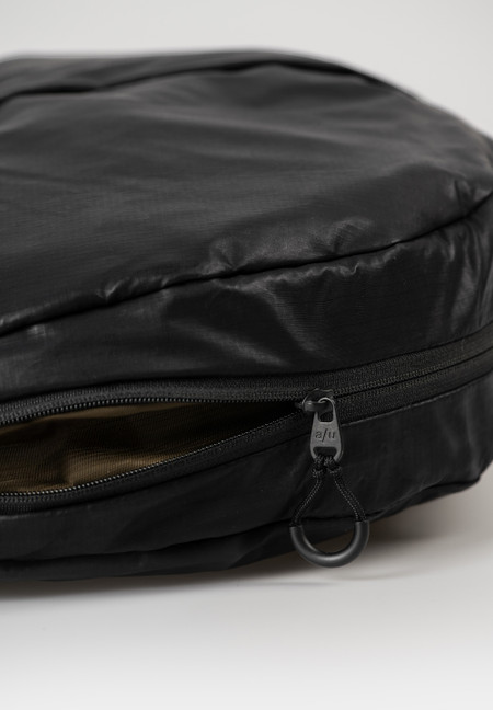 All styles have a water-repellent impregnation. An additional PFAS free coating gives them a highly functional, rainproof surface. We also use special high-performance threads that do not absorb water. The styles in the color cloud nine are made from tightly woven, recycled nylon certified according to the Global Recycled Standard and have an additional dirt-repellent coating. The tightly woven ripstop fabric of the models in the color black is made from recycled nylon and GOTS certified cotton. Inside is a durable lining made from recycled polyester.