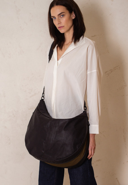 Are you looking for a sports or travel bag outside of the usual designs or simply a lightweight bag for everyday use in which you can store everything, absolutely everything, that you can't do without on the go? Then Miyagawa is the bag for you, because the puffy crossbody bag made of ripstop material made from recycled nylon and cotton comes in the modern shape of a half-moon bag and offers almost endless storage space. The pouchy material is lightweight yet extremely robust and gives Miyagawa a relaxed, sporty look. External zipper pockets and a structured interior design, including a removable extra pocket and key strap, ensure order and a clear overview.
