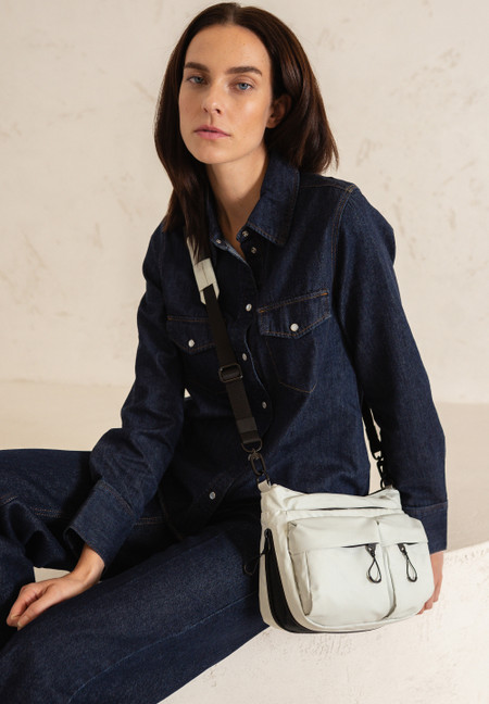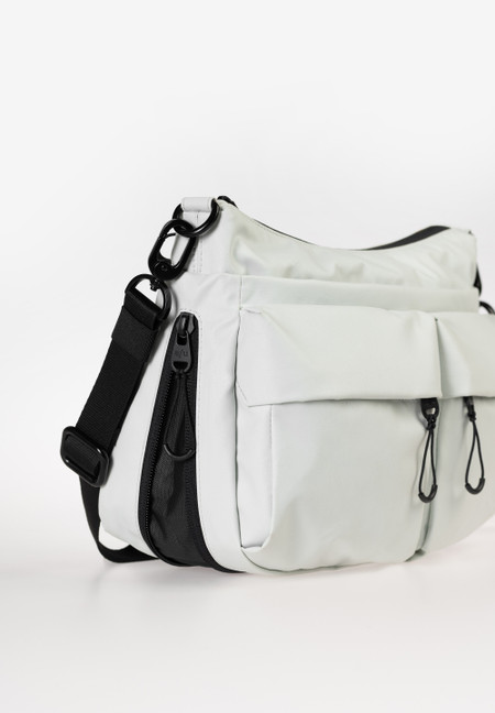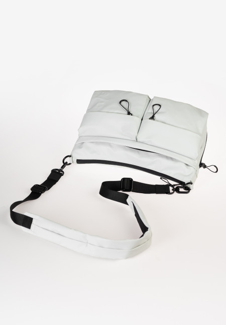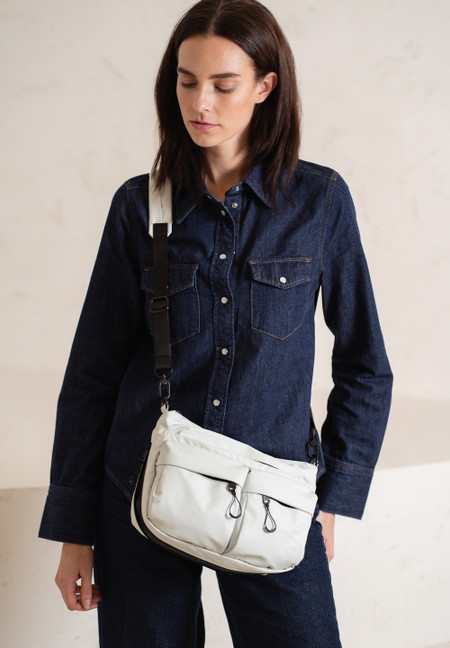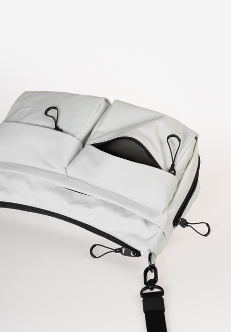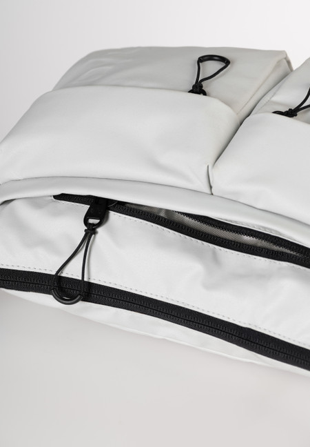 All styles have a water-repellent impregnation. An additional PFAS free coating gives them a highly functional, rainproof surface. We also use special high-performance threads that do not absorb water. The styles in the color cloud nine are made from tightly woven, recycled nylon certified according to the Global Recycled Standard and have an additional dirt-repellent coating. The tightly woven ripstop fabric of the models in the color black is made from recycled nylon and GOTS certified cotton. Inside is a durable lining made from recycled polyester.