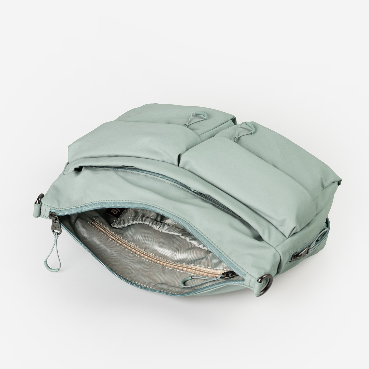 Just like the larger Omono version, Mogami impresses with its clearly arranged storage space in a cuddly shape. The rainproof crossbody bag is made from lightweight, recycled nylon. The puffy design gives your look a casual, sporty touch. The main compartment with zipper offers enough space for your daily essentials, while outer zipper pockets allow quick access to important items. Thanks to the all-round zipper, the bag volume can be expanded as required so that you always have enough space for everything you want to take with you.