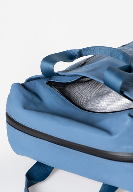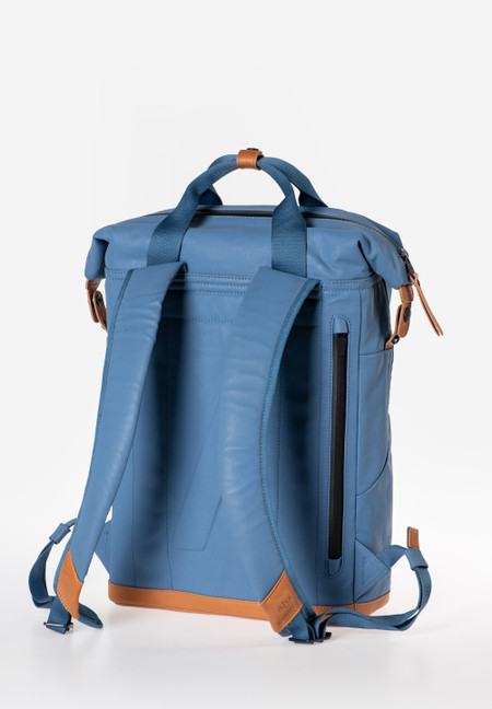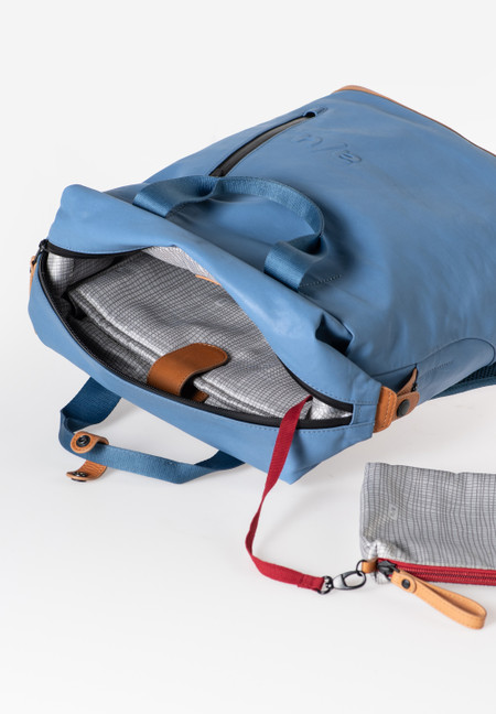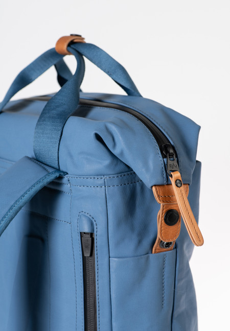 The canvas in our Japan series is made from densely combed and woven organic cotton and finished with a semi-gloss vintage coating. The PFAS free coating gives the styles a water-repellent surface with a leather-like look that polishes with use. We use special high-performance threads for this series that do not absorb water. The rainproof zippers are made from recycled material. The leather applications are made from sustainably tanned premium cowhide. care advice