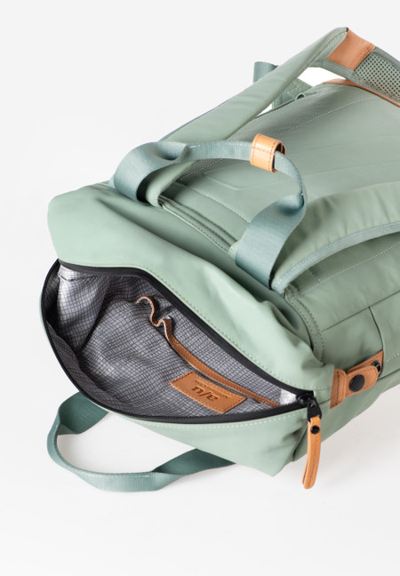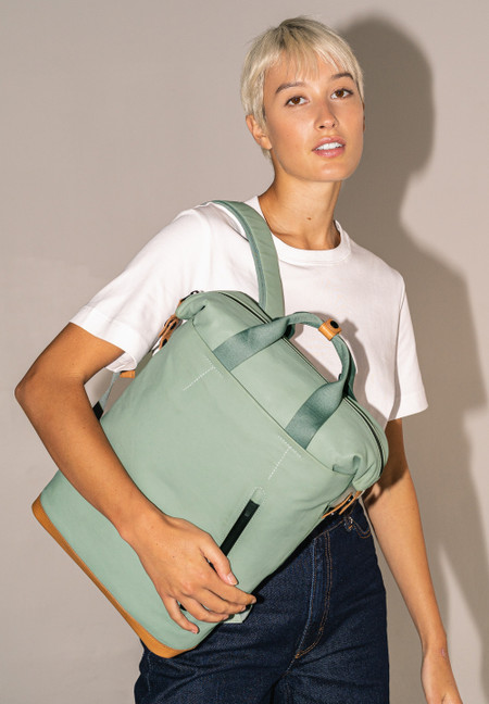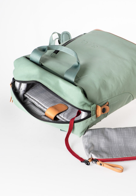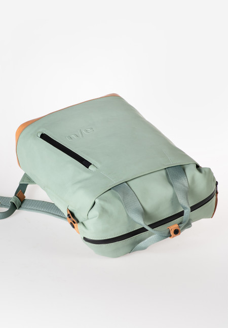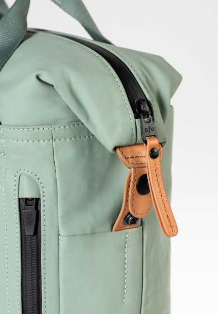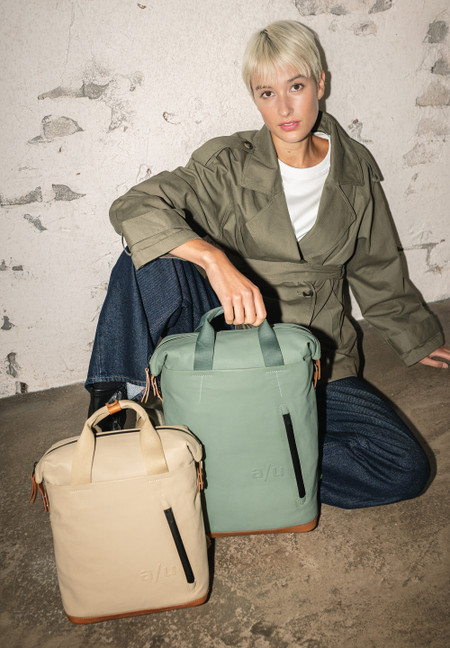 The canvas in our Japan series is made from densely combed and woven organic cotton and finished with a semi-gloss vintage coating. The PFAS free coating gives the styles a water-repellent surface with a leather-like look that polishes with use. We use special high-performance threads for this series that do not absorb water. The rainproof zippers are made from recycled material. The leather applications are made from sustainably tanned premium cowhide. care advice