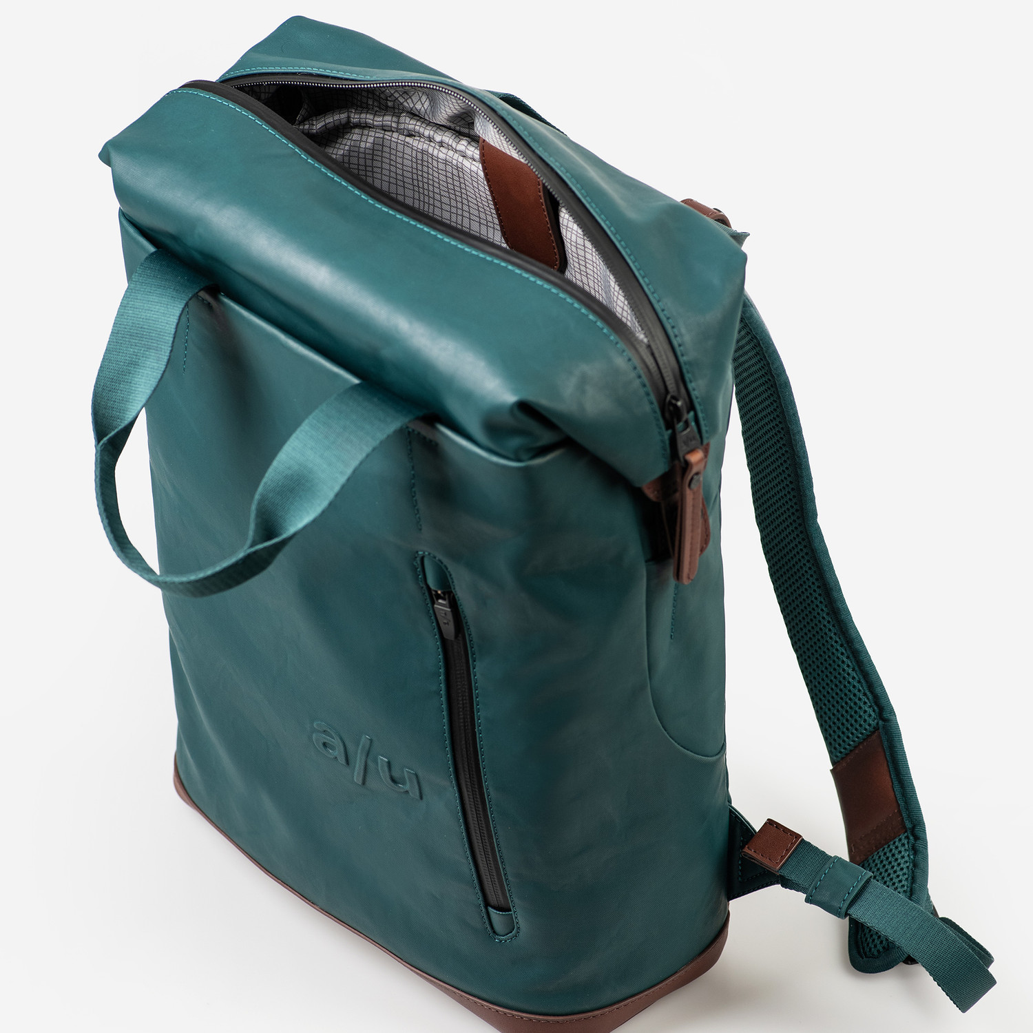The canvas in our Japan series is made from densely combed and woven organic cotton and finished with a semi-gloss vintage coating. The PFAS free coating gives the styles a water-repellent surface with a leather-like look that polishes with use. We use special high-performance threads for this series that do not absorb water. The rainproof zippers are made from recycled material. The leather applications are made from sustainably tanned premium cowhide. care advice