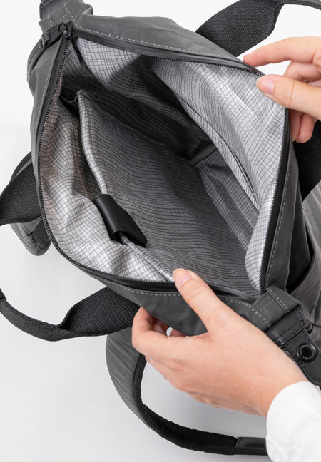 The canvas in our Japan series is made from densely combed and woven organic cotton and finished with a semi-gloss vintage coating. The PFAS free coating gives the styles a water-repellent surface with a leather-like look that polishes with use. We use special high-performance threads for this series that do not absorb water. The rainproof zippers are made from recycled material. The leather applications are made from sustainably tanned premium cowhide. care advice