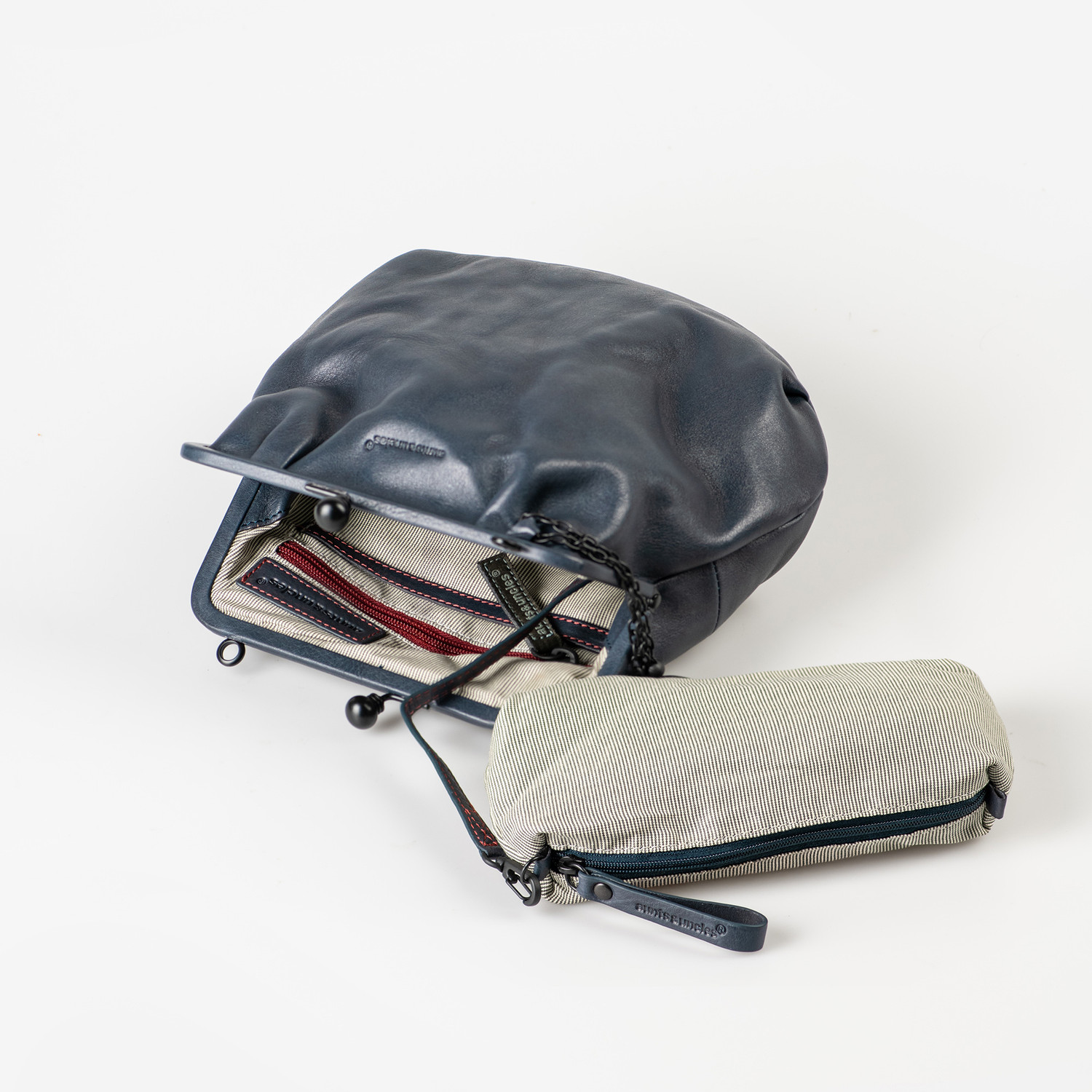 Mrs. Fortune Cookie is a real winner, made of highly vegetable-tanned premium cowhide with the crinkled look characteristic of Grandma's Luxury Club. The crossbody bag with the charming clip opening can also be worn as a cool clutch without the strap and comes with a well thought-out interior, a removable extra pocket and a link chain with a vintage pendant.