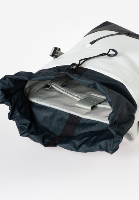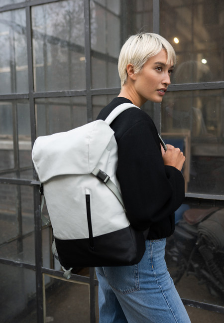 The lightweight yet extremely durable recycled nylon is certified according to the Global Recycled Standard. In addition to a water-repellent impregnation, a PFC- and PFAS-free coating provides reliable protection against moisture and gives the material a highly functional, weather-resistant surface. Furthermore, we use special water-repellent high-performance threads. The zippers are treated with a water-repellent finish. The Aquaguard zippers by YKK are made from recycled PET. The leather details on the non-vegan styles are made from sustainably tanned premium cowhide leather and come from an LWG-certified tannery. The a/u lining is made from recycled polyester. care advice