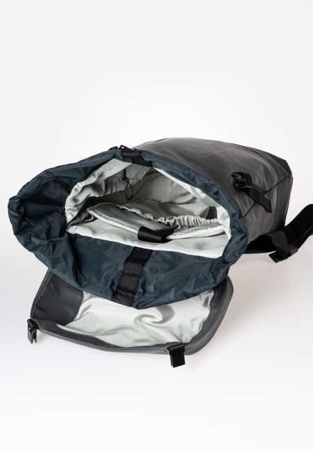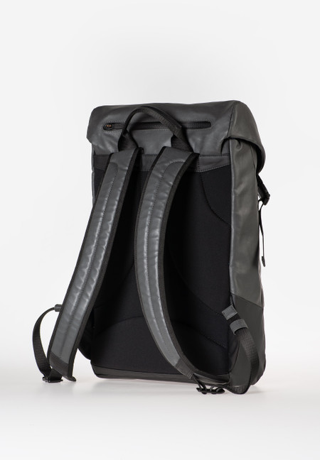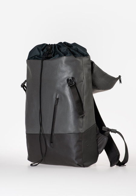 The lightweight yet extremely durable recycled nylon is certified according to the Global Recycled Standard. In addition to a water-repellent impregnation, a PFC- and PFAS-free coating provides reliable protection against moisture and gives the material a highly functional, weather-resistant surface. Furthermore, we use special water-repellent high-performance threads. The zippers are treated with a water-repellent finish. The Aquaguard zippers by YKK are made from recycled PET. The leather details on the non-vegan styles are made from sustainably tanned premium cowhide leather and come from an LWG-certified tannery. The a/u lining is made from recycled polyester. care advice