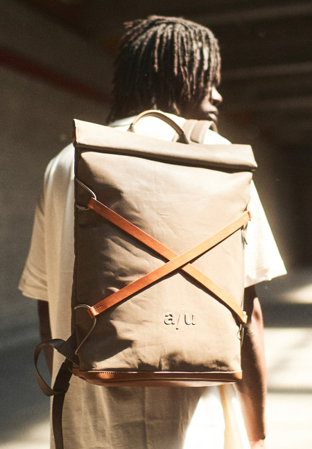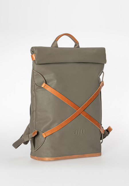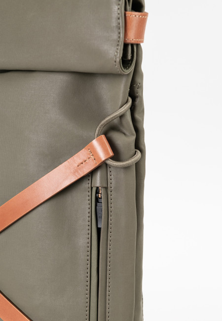 The canvas in our Japan series is made from densely combed and woven organic cotton and finished with a semi-gloss vintage coating. The PFAS free coating gives the styles a water-repellent surface with a leather-like look that polishes with use. We use special high-performance threads for this series that do not absorb water. The rainproof zippers are made from recycled material. The leather applications are made from sustainably tanned premium cowhide. care advice