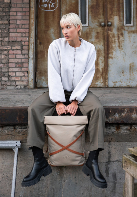 The canvas in our Japan series is made from densely combed and woven organic cotton and finished with a semi-gloss vintage coating. The PFAS free coating gives the styles a water-repellent surface with a leather-like look that polishes with use. We use special high-performance threads for this series that do not absorb water. The rainproof zippers are made from recycled material. The leather applications are made from sustainably tanned premium cowhide. care advice