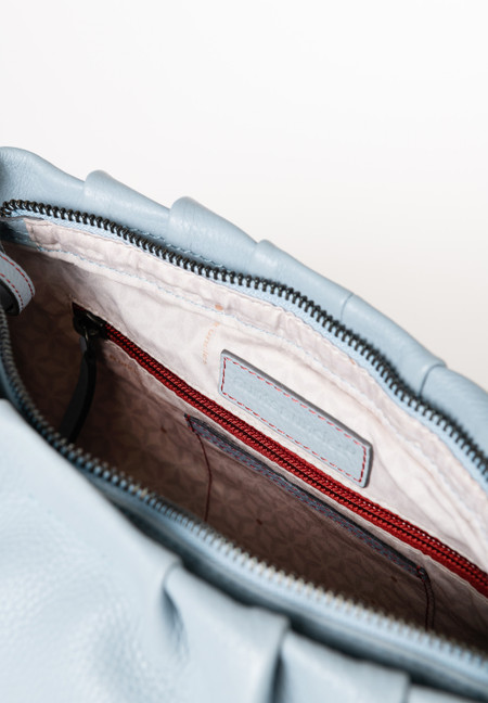 Pearl is a casually elegant shoulder bag made from grained leather with a particularly soft, cuddly feel. The clearly organized interior with various insertion options and a practical key strap make the soft shoulder bag the ideal companion for every day, as the wide bottom provides a voluminous design with plenty of storage space. The delicate gatherings create a feminine aesthetic that gives your outfit a modern touch. In addition to the wide shoulder strap, Pearl comes with an adjustable crossbody strap.