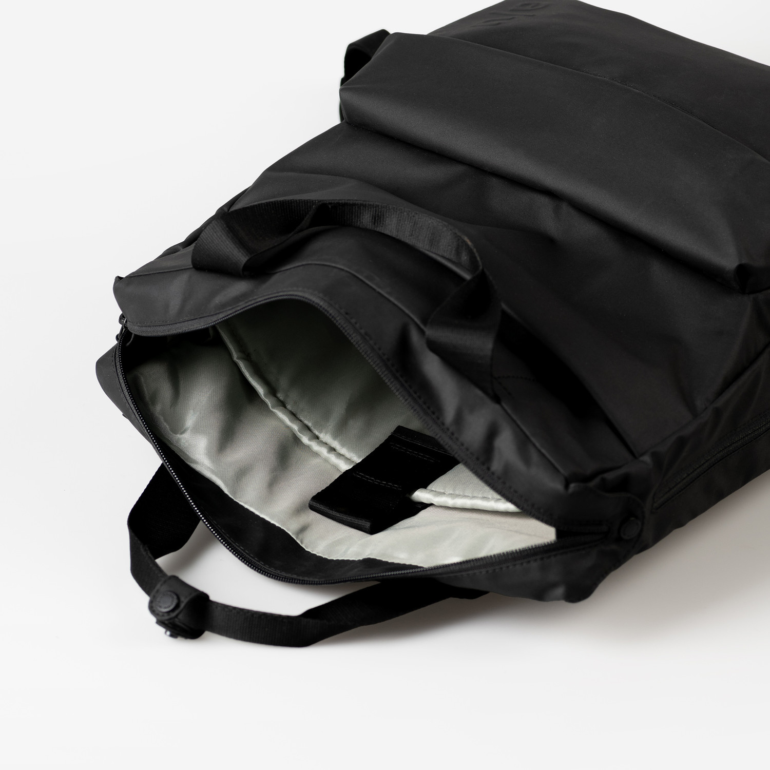 The styles are made from tightly woven, recycled nylon certified according to the Global Recycled Standard and have a water-repellent impregnation. An additional PFAS free coating gives them a highly functional, rainproof surface. We also use special high-performance threads that do not absorb water. The styles in light colors have an additional dirt-repellent coating. Inside is a durable lining made from recycled polyester.