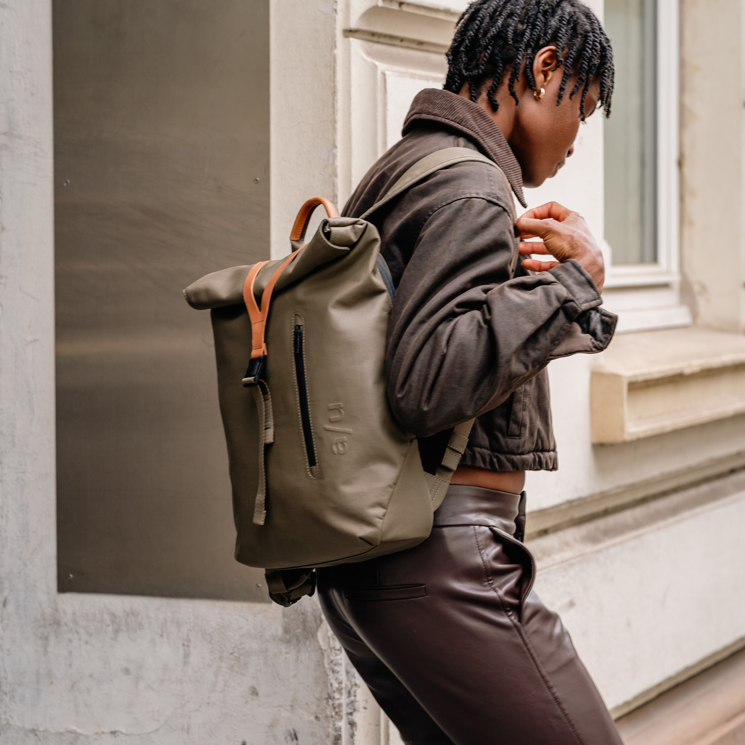 The lightweight yet durable recycled nylon is certified according to the Global Recycled Standard. In addition to a water-repellent finish, a PFC- and PFAS-free coating reliably protects against moisture and gives the material a highly functional, weather-resistant surface. We also use special water-repellent high-performance yarns. The robust YKK zippers are water-repellent impregnated. The leather details of the non-vegan styles are made from sustainably tanned premium cowhide and come from an LWG-certified tannery. The a/u lining is made from recycled polyester. care advice