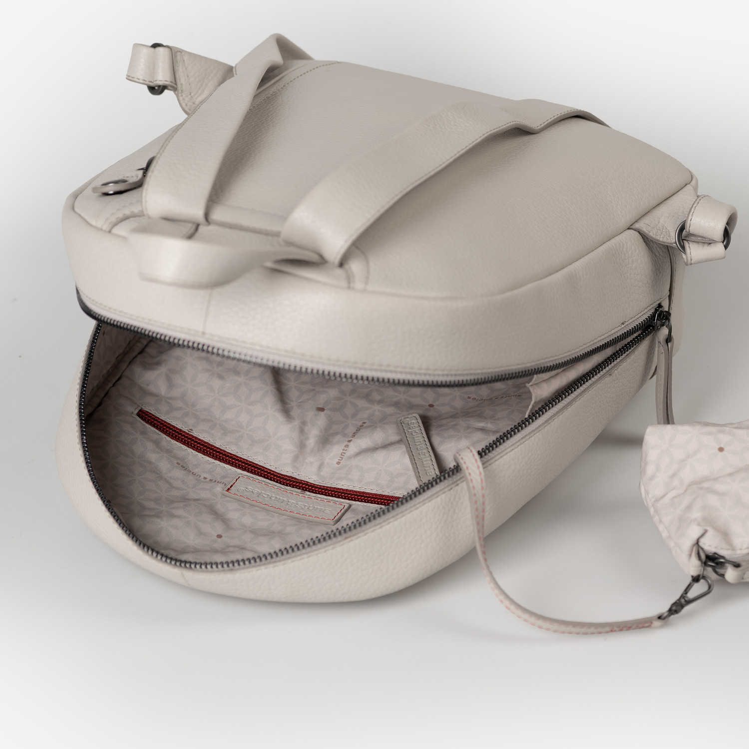 Tender is made for those who normally don’t wear backpacks and suddenly don’t want to go without. With its softly rounded shape, finely grained nappa leather, and minimal detailing, Tender blends effortlessly into sophisticated looks without compromising on comfort. This backpack stands out with its supple design that’s functional without looking too sporty. A two-way zip that runs all the way around opens up to a thoughtfully organized main compartment: a padded slip-in pocket for your tablet, a large slot for your smartphone, an interior zip pocket, a key strap, and a removable extra pouch provide space for everything you need throughout the day. A front pocket with a tuck lock and a secured zip pocket on the back complete the setup. A short handle and adjustable shoulder straps offer flexible carrying options.