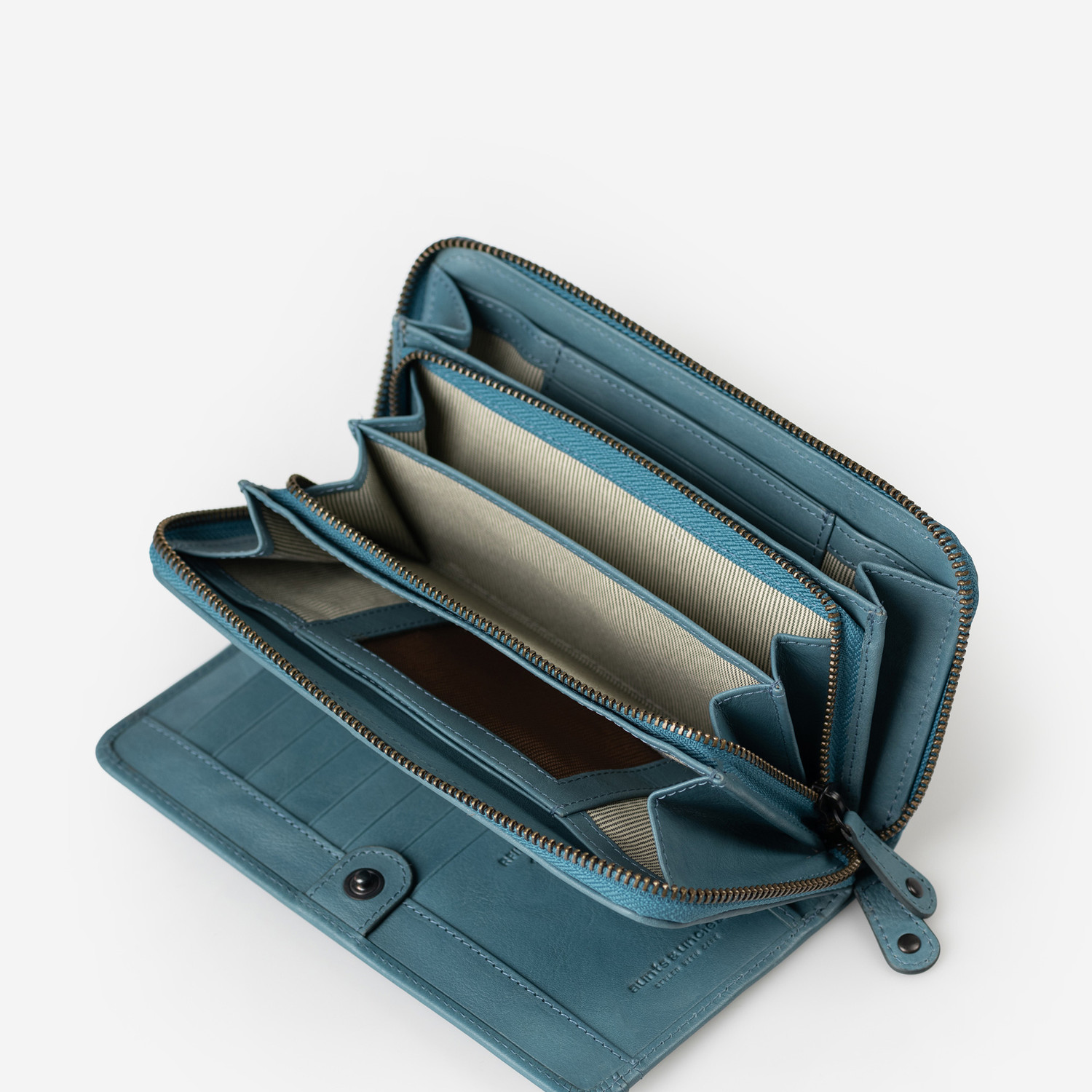 Tilda easily puts credit, customer and insurance cards in her pockets and coins and notes are also stored safely and neatly in her many compartments. Furthermore, a special RFID foil prevents your data from being read unnoticed by you. The highly vegetable-tanned premium cowhide is soft in the hand and gets its typical, wrinkled look through a particularly gentle drying process.