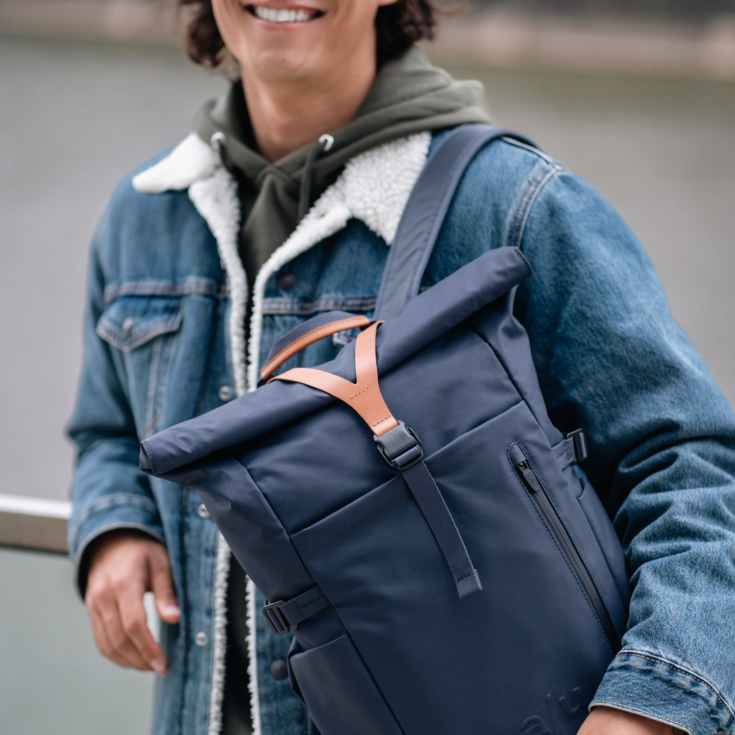 Tokachi RE scores with its lightweight, sophisticated design that can take on any adventure. The weatherproof backpack is made from recycled nylon. Applications and a base made from carefully tanned premium leather create a distinctive look. The flexible main compartment with roll closure, a padded notebook compartment, various inner and outer pockets and practical details such as pen loops and a key strap ensure optimal organization. Padded shoulder straps and an ergonomic back guarantee the highest level of carrying comfort. Tokachi RE is the bigger version of Tama RE.