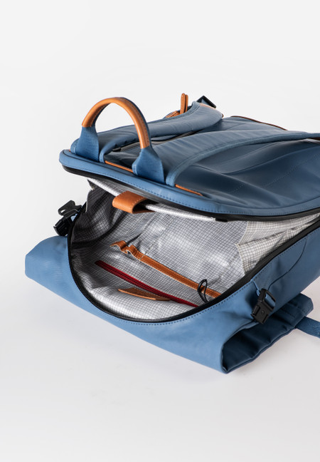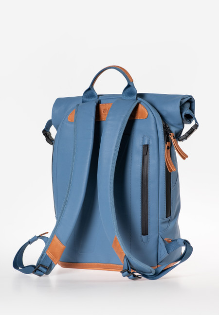 The canvas in our Japan series is made from densely combed and woven organic cotton and finished with a semi-gloss vintage coating. The PFAS free coating gives the styles a water-repellent surface with a leather-like look that polishes with use. We use special high-performance threads for this series that do not absorb water. The rainproof zippers are made from recycled material. The leather applications are made from sustainably tanned premium cowhide. care advice