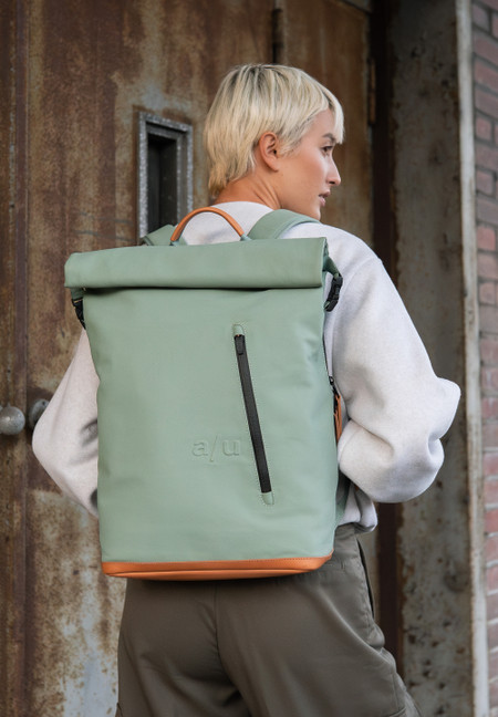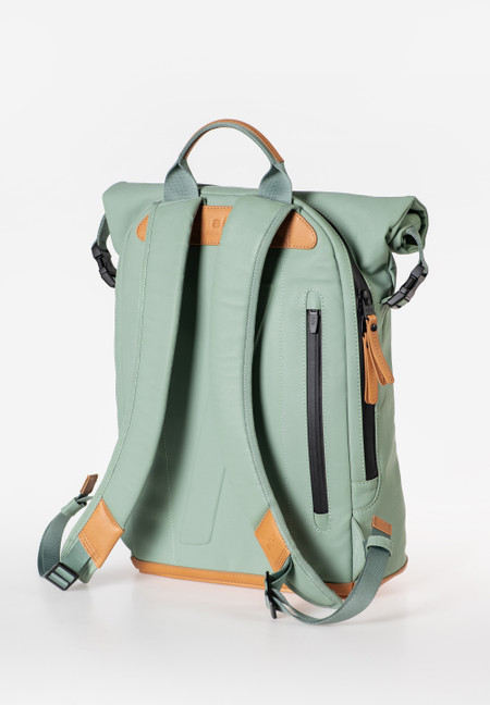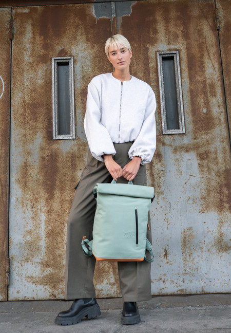 The canvas in our Japan series is made from densely combed and woven organic cotton and finished with a semi-gloss vintage coating. The PFAS free coating gives the styles a water-repellent surface with a leather-like look that polishes with use. We use special high-performance threads for this series that do not absorb water. The rainproof zippers are made from recycled material. The leather applications are made from sustainably tanned premium cowhide. care advice