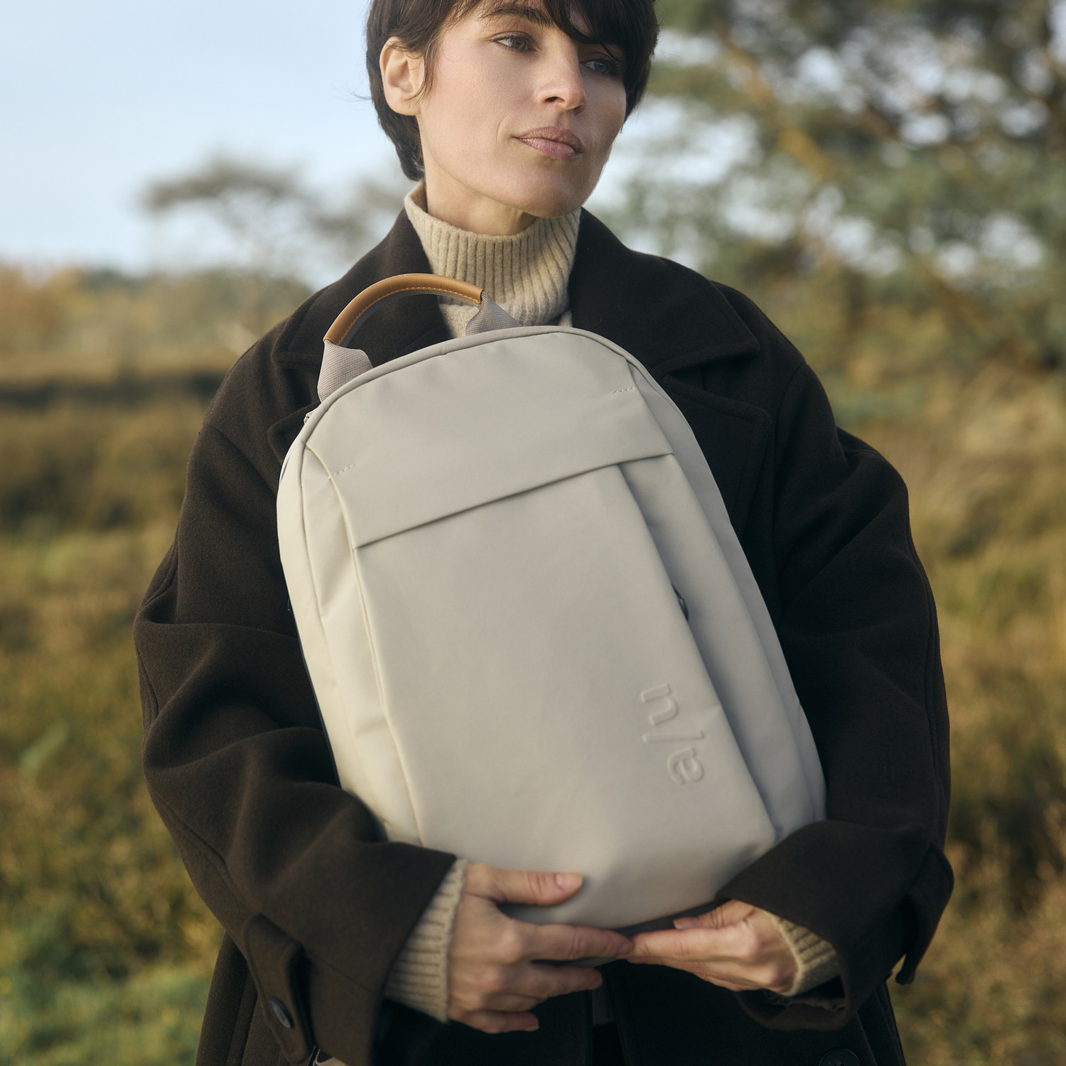 The lightweight yet extremely durable recycled nylon is certified according to the Global Recycled Standard. In addition to a water-repellent impregnation, a PFC- and PFAS-free coating provides reliable protection against moisture and gives the material a highly functional, weather-resistant surface. Furthermore, we use special water-repellent high-performance threads. The zippers are treated with a water-repellent finish. The Aquaguard zippers by YKK are made from recycled PET. The leather details on the non-vegan styles are made from sustainably tanned premium cowhide leather and come from an LWG-certified tannery. The a/u lining is made from recycled polyester. care advice
