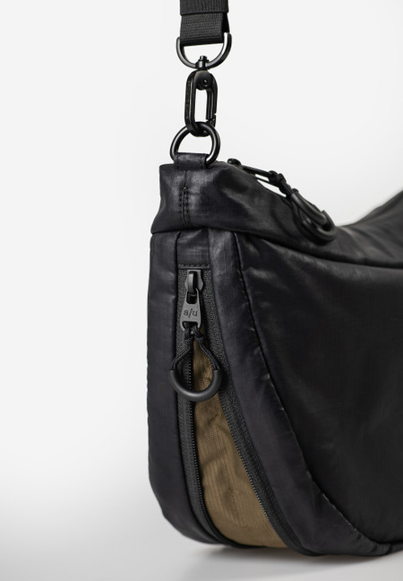 All styles have a water-repellent impregnation. An additional PFAS free coating gives them a highly functional, rainproof surface. We also use special high-performance threads that do not absorb water. The styles in the color cloud nine are made from tightly woven, recycled nylon certified according to the Global Recycled Standard and have an additional dirt-repellent coating. The tightly woven ripstop fabric of the models in the color black is made from recycled nylon and GOTS certified cotton. Inside is a durable lining made from recycled polyester.