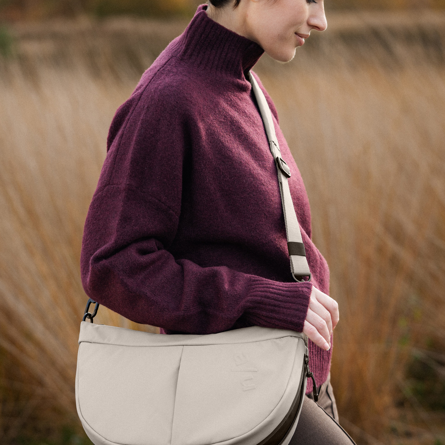 Toyo comes in the relaxed shape of a slouchy half-moon bag, lightweight yet rainproof and robust. Its spacious main compartment offers plenty of storage space for everything you need on the go. Clearly arranged inner pockets, a removable extra pocket and a key strap keep your essentials in place, while outer zipper pockets on the front and back offer additional storage options. And if that's still not enough because you spontaneously need a little more space than usual, you can easily increase the Toyo's volume with the all-round zipper.