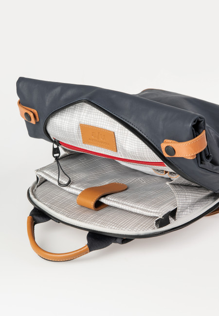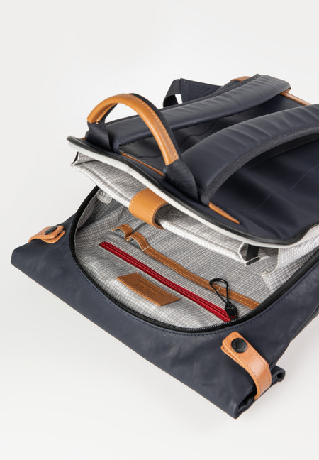 The canvas in our Japan series is made from densely combed and woven organic cotton and finished with a semi-gloss vintage coating. The PFAS free coating gives the styles a water-repellent surface with a leather-like look that polishes with use. We use special high-performance threads for this series that do not absorb water. The rainproof zippers are made from recycled material. The leather applications are made from sustainably tanned premium cowhide. care advice