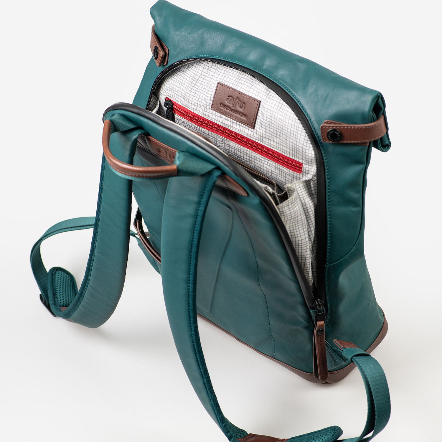 Wakayama is the smallest in our family of roll-top backpacks, but still big enough for A4 documents and a tablet or notebook up to 13 inches. Small items find a safe place in numerous, clearly arranged insertion options. In addition to the height-adjustable roll-top closure, Wakayama has a large zipper opening on the back so you have quick access to your belongings at all times. Padded straps and the padded back ensure a comfortable carrying.