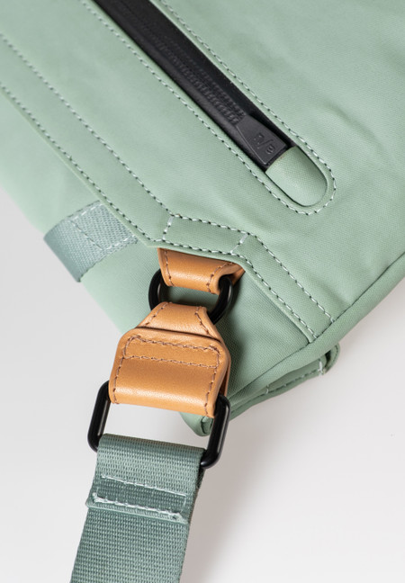 The canvas in our Japan series is made from densely combed and woven organic cotton and finished with a semi-gloss vintage coating. The PFAS free coating gives the styles a water-repellent surface with a leather-like look that polishes with use. We use special high-performance threads for this series that do not absorb water. The rainproof zippers are made from recycled material. The leather applications are made from sustainably tanned premium cowhide. care advice