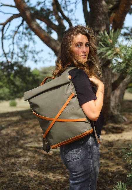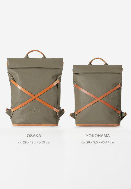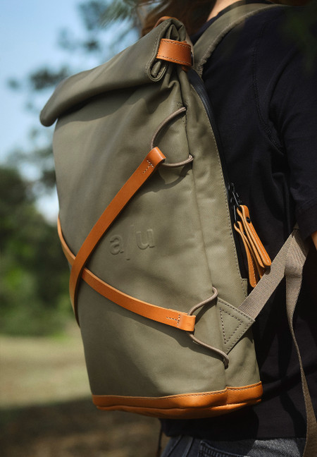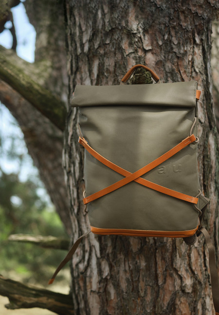 The canvas in our Japan series is made from densely combed and woven organic cotton and finished with a semi-gloss vintage coating. The PFAS free coating gives the styles a water-repellent surface with a leather-like look that polishes with use. We use special high-performance threads for this series that do not absorb water. The rainproof zippers are made from recycled material. The leather applications are made from sustainably tanned premium cowhide. care advice