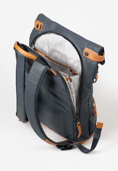 The canvas in our Japan series is made from densely combed and woven organic cotton and finished with a semi-gloss vintage coating. The PFAS free coating gives the styles a water-repellent surface with a leather-like look that polishes with use. We use special high-performance threads for this series that do not absorb water. The rainproof zippers are made from recycled material. The leather applications are made from sustainably tanned premium cowhide. care advice