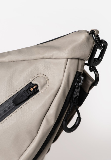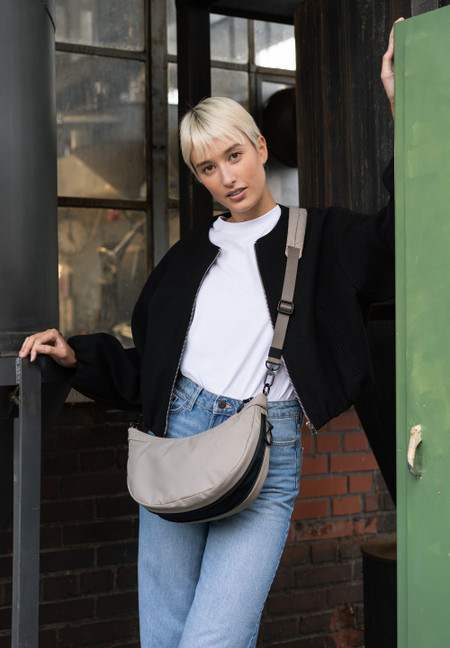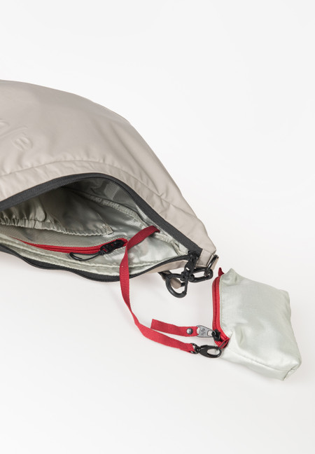The lightweight yet extremely durable recycled nylon is certified according to the Global Recycled Standard. In addition to a water-repellent impregnation, a PFC- and PFAS-free coating provides reliable protection against moisture and gives the material a highly functional, weather-resistant surface. Furthermore, we use special water-repellent high-performance threads. The zippers are treated with a water-repellent finish. The Aquaguard zippers by YKK are made from recycled PET. The leather details on the non-vegan styles are made from sustainably tanned premium cowhide leather and come from an LWG-certified tannery. The a/u lining is made from recycled polyester. care advice