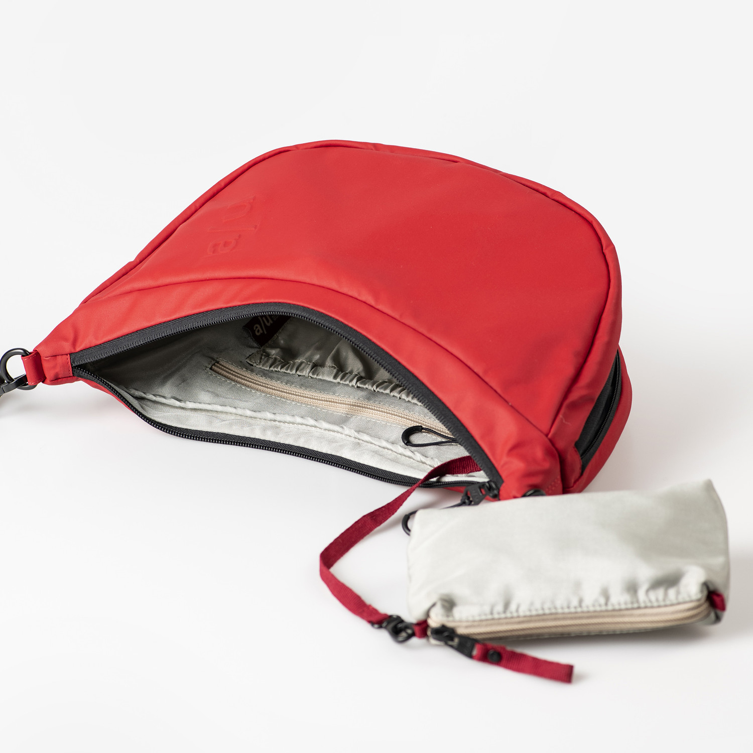 The lightweight yet extremely durable recycled nylon is certified according to the Global Recycled Standard. In addition to a water-repellent impregnation, a PFC- and PFAS-free coating provides reliable protection against moisture and gives the material a highly functional, weather-resistant surface. Furthermore, we use special water-repellent high-performance threads. The zippers are treated with a water-repellent finish. The Aquaguard zippers by YKK are made from recycled PET. The leather details on the non-vegan styles are made from sustainably tanned premium cowhide leather and come from an LWG-certified tannery. The a/u lining is made from recycled polyester. care advice
