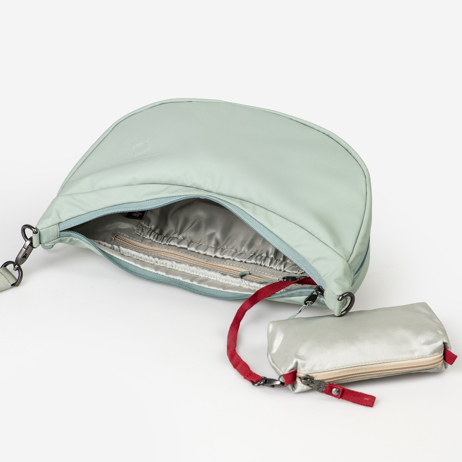 Yoshii RE is the smaller version of Koyoshi RE, robust, rainproof and timeless in design. The casual half-moon bag is made from recycled nylon, which is characterized by its low weight and special durability. In its spacious main compartment, you find various, clearly arranged pockets, a key strap and a removable extra pouch. Thanks to an all-round zipper, the volume of the bag can be increased if necessary. You can store important essentials close to your body in a zipper pocket on the back. A shoulder padding provides extra comfort.